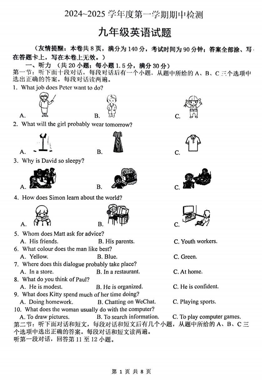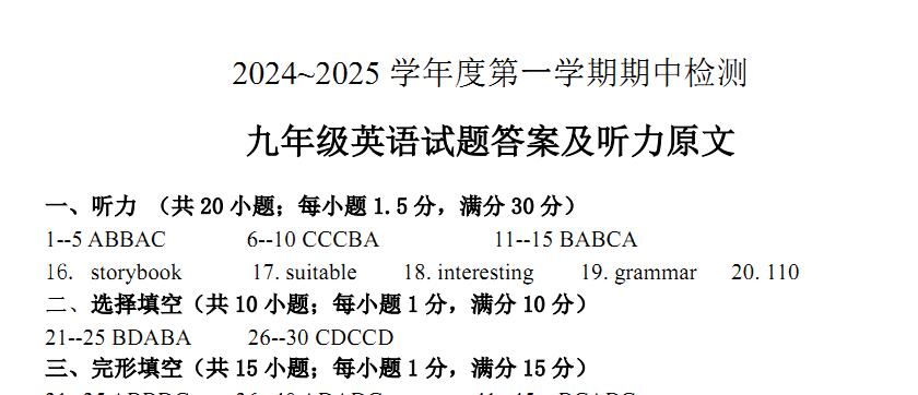 本资料来自专辑: 江苏省徐州市2024-2025学年九年级上学期期中检测试卷汇总(含答案) 江苏省徐州市2024-2025学年九年级上学期期中检测试卷: 江苏省徐州市2024-2025学年九年级上学期期中检测语文试卷(含答案) 江苏... 查看文章 江苏省徐州市2024-2025学年九年级上学期期中检测英语试卷 ………… ………… 资源下载此资源下载价格为1学币,VIP免费,请先登录资源每日更新! 升级终身VIP会员,享全站终身永久免费下载特权!限时优惠!如有问题,请联系客服QQ:6056064