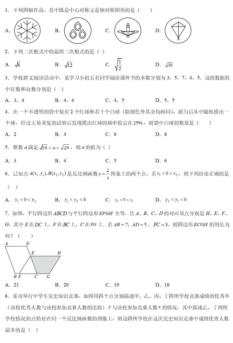 2023-2024学年八年级下学期期末