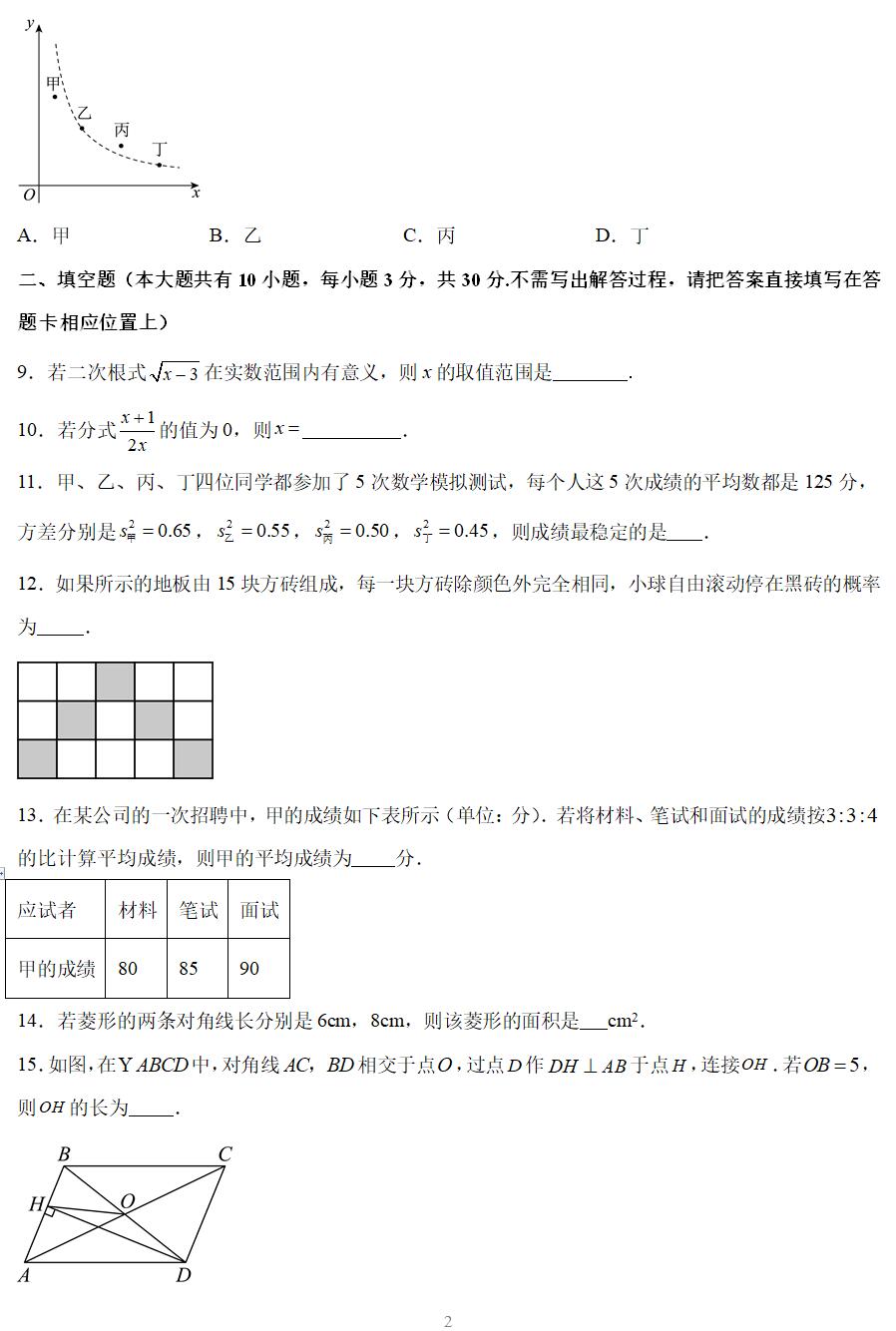一、选择题(本大题共有8小题,每小题3分,共24分,在每小题所给出的四个选项中,恰有一项是符合题目要求的,请将正确选项前的字母代号填涂在答题卡相应位置上)