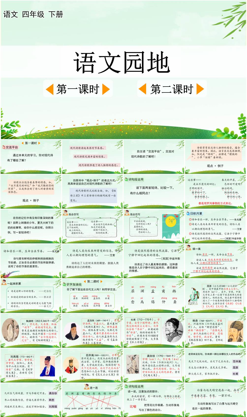 本资料来自专辑: 2025年春四年级语文下册PPT课件汇总(统编版) 2025年春四年级语文下册PPT课件汇总(统编版): 第一单元: 2025年春四年级下册语文第1课《古诗词三首》PPT课件(统编版) 20... 查看文章 2025年春四年级下册语文第三单元《语文园地》PPT课件(统编版) 资源下载此资源下载价格为3学币,VIP免费,请先登录资源每日更新! 升级终身VIP会员,享全站终身永久免费下载特权!限时优惠!如有问题,请联系客服QQ:6056064