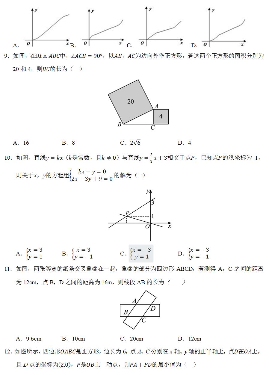 【点睛】本题考查正比例函数的性质,解答本题的关键是明确当时,正比例函数的图象经过第一、三象限。