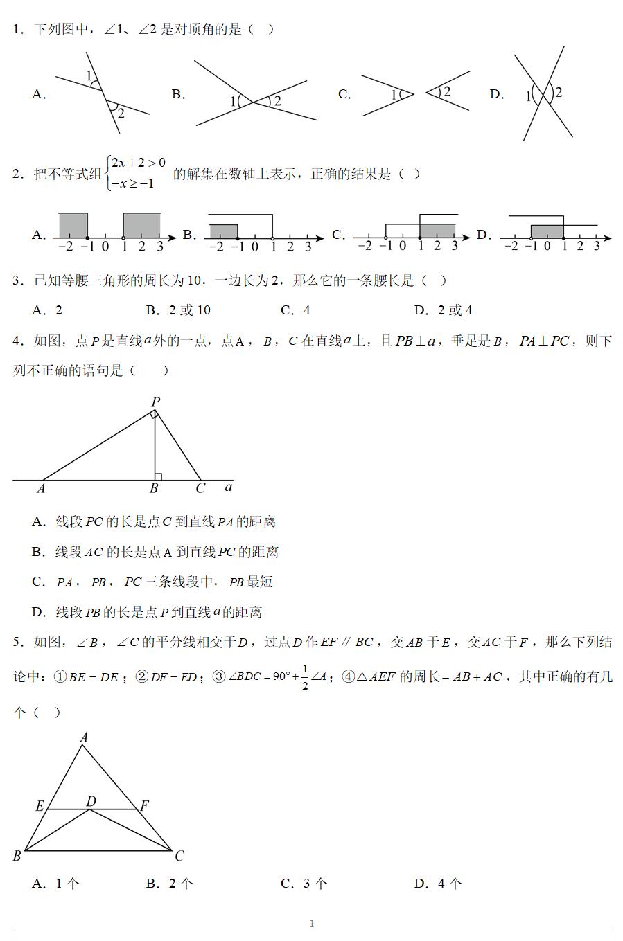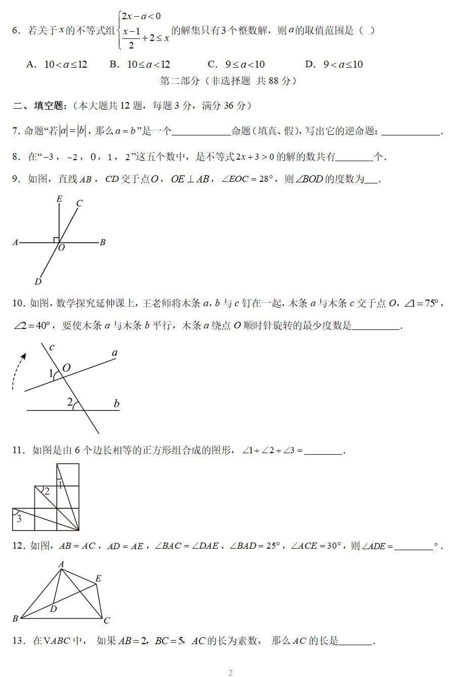 4.测试范围:沪教五四版(2024)第15章一元一次不等式~第18章等腰三角形。